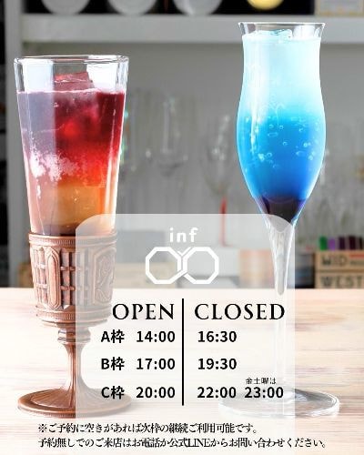 フード … 閉店1時間前(週末などのピークタイムは早めにLOとさせて頂く場合がございます)